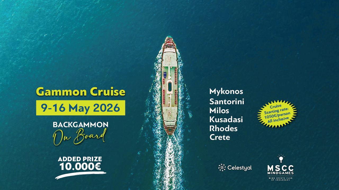 Welcome to the 4th Greek Grand Prix 2026, an international backgammon championship! Get ready for the ultimate backgammon adventure at sea!